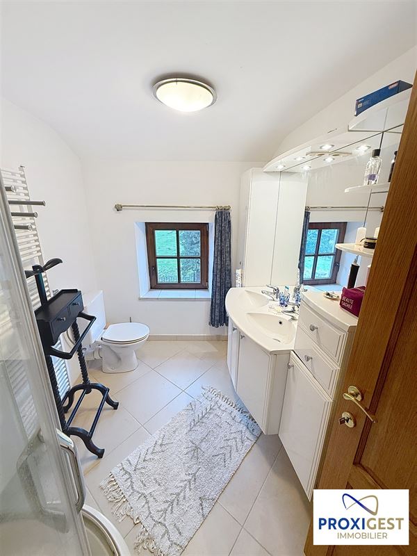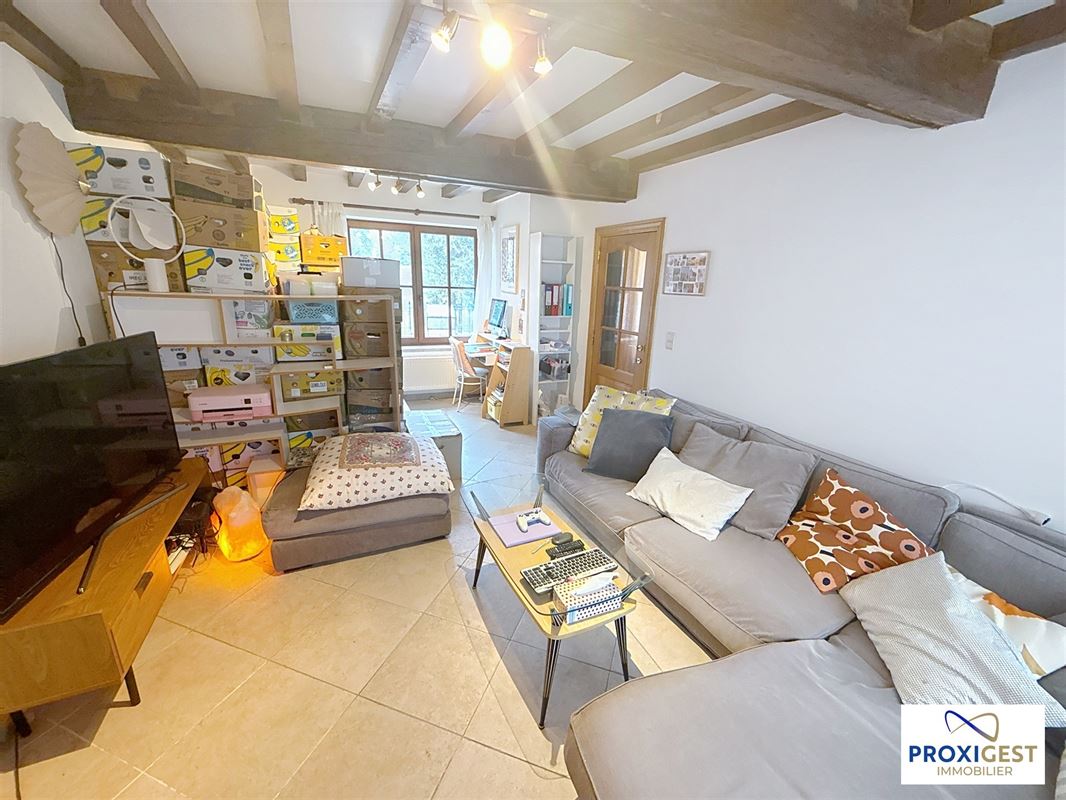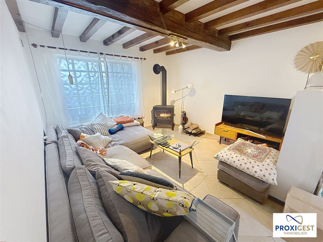 LESVE, entre Namur et Profondeville - Très agréable maison 2 chambres pour amateur de calme et de nature, avec cave, garage et grande terrasse. A deux pas du centre du village, la maison se compose de : hall d'entrée, salon avec poêle à bois, salle à manger avec cuisine américaine équipée (hotte, four, taque de cuisson vitro-céramique, frigo, lave-vaisselle, évier double bac, meubles de rangement), wc avec lave-main et espace buanderie, garage, hall de nuit, 2 chambres, salle de douche, grande terrasse. Chauffage central mazout, compteur électrique et compteur d'eau individuels. A VOIR ABSOLUMENT